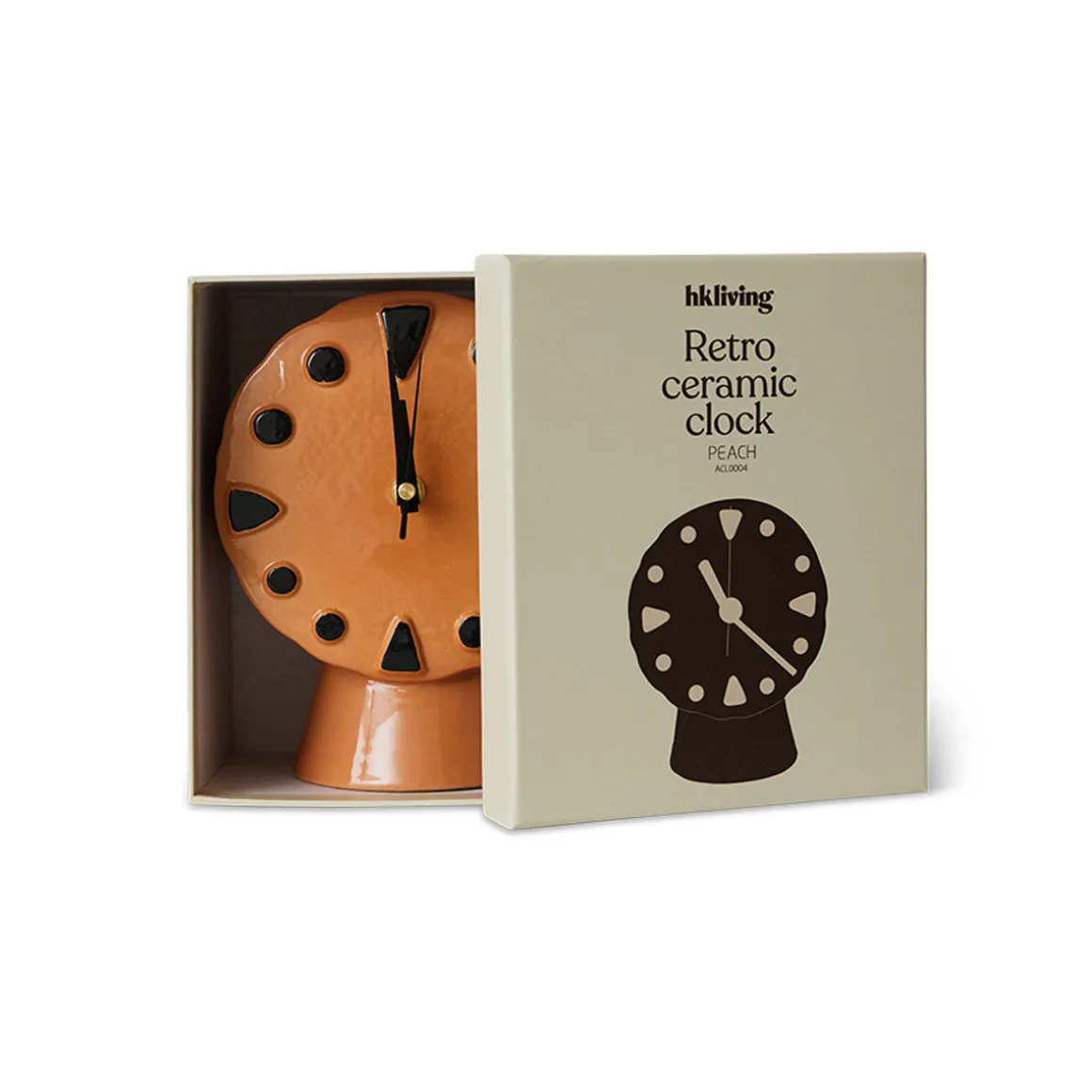 Alliant fonctionnalité et esthétique, l’Horloge Rétro en Céramique Pêche de HK Living se distingue par son charme artisanal. Chaque pièce est unique, grâce aux légères variations créées par la cuisson de la céramique. Le vernis doux et les chiffres peints à la main évoquent un style vintage raffiné, tandis que ses proportions compactes et sa teinte rose pastel apportent une touche moderne et apaisante.