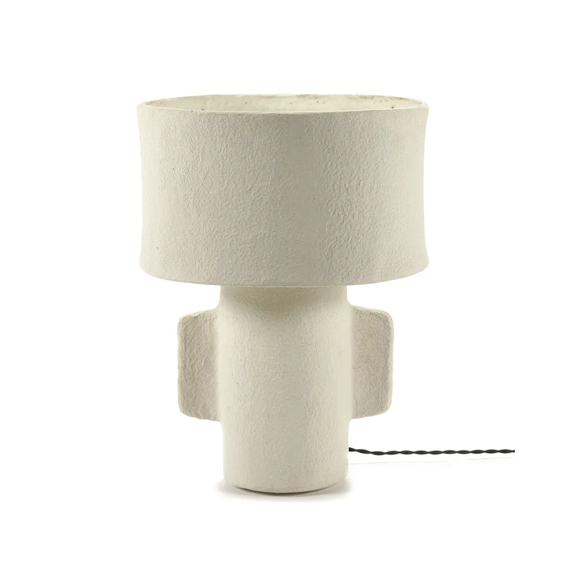 L’amour immodéré pour le papier tout comme la volonté de réemployer des matériaux a poussé Marie Michielssen à créer une série de lampes et de pots caractéristiques en papier mâché. Jouant avec les volumes, elle imagine des silhouettes uniques à l’ossature linéaire savamment pensée. Révélant un fort caractère artisanal, les rais de lumières trouvent leur chemin par les ouvertures tandis que les vases se dotent de poignées singulières. En découlent des créations apaisantes, brutes et authentiques. Disponibles en plusieurs modèles.