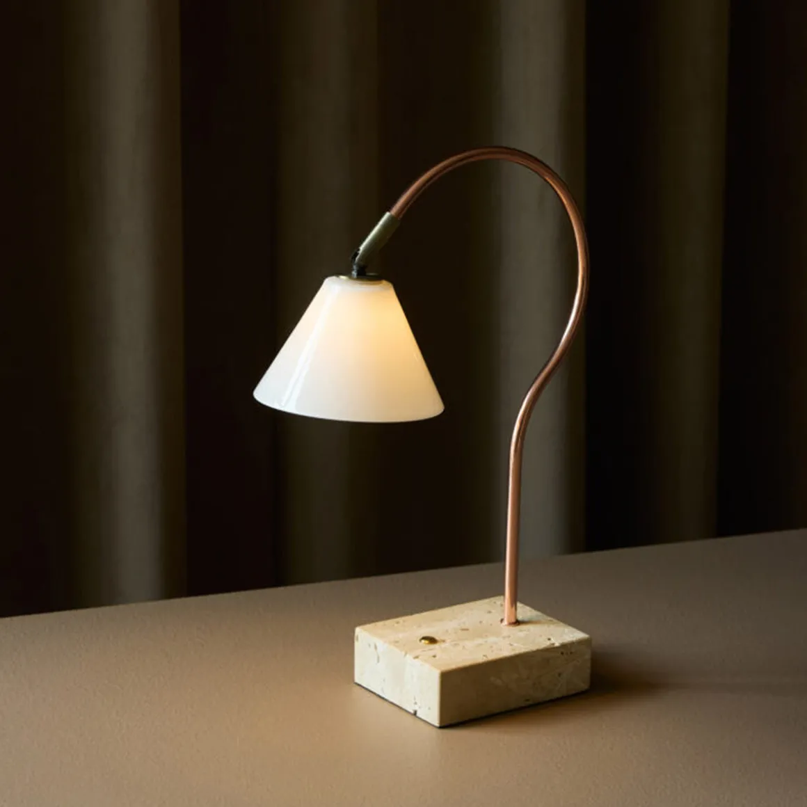 La lampe de table Question se distingue par son allure élégante. Elle allie beauté intemporelle et fonctionnalité moderne. Avec une base en travertin et un abat-jour en verre et métal, cette lampe apporte une esthétique sophistiquée à n’importe quelle pièce. Grâce sa petite taille, elle peut être placée sur une table de chevet ou une console. Avec un variateur pratique à 3 niveaux, vous pouvez facilement régler la luminosité selon vos besoins.