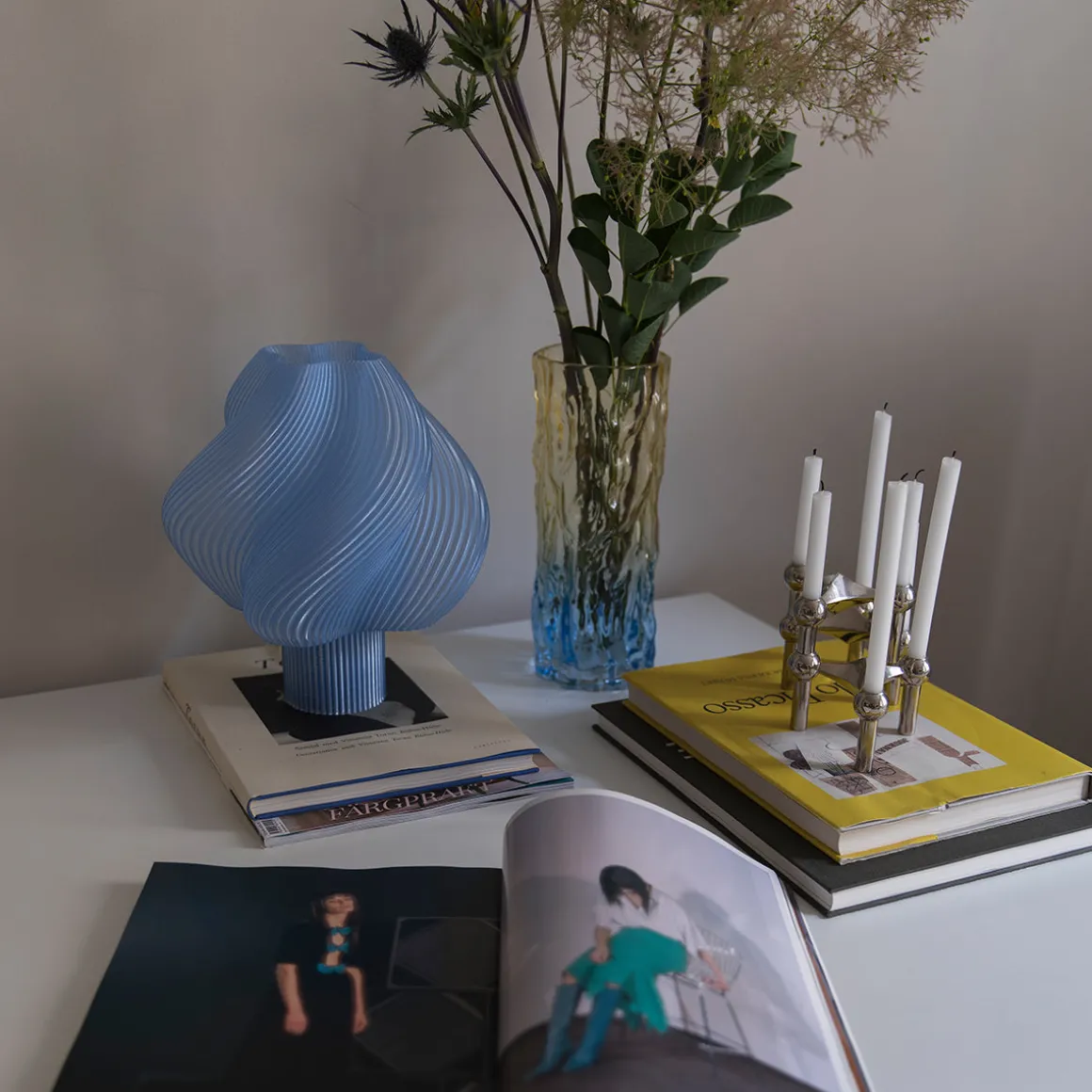 Lauréate des Scandinavian Design Awards 2023 « Detail of the year » et des Plaza Interiors Sustainability awards 2022, la Lampe Soft Serve Blueberry Sorbet illuminera votre intérieur d’une touche de légèreté.