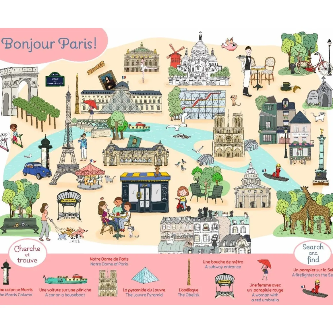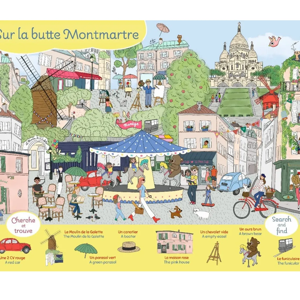 Entrez dans les rues enchanteresses de Paris avec « Paris : le cherche et trouve en version bilingue« . Ce livre captivant emmène votre enfant dans un voyage poétique à travers dix images représentant des lieux emblématiques tels que la Tour Eiffel et le Louvre, des sons et des saveurs représentant la ville. Vous embarquerez pour une visite visuelle sans pareille.