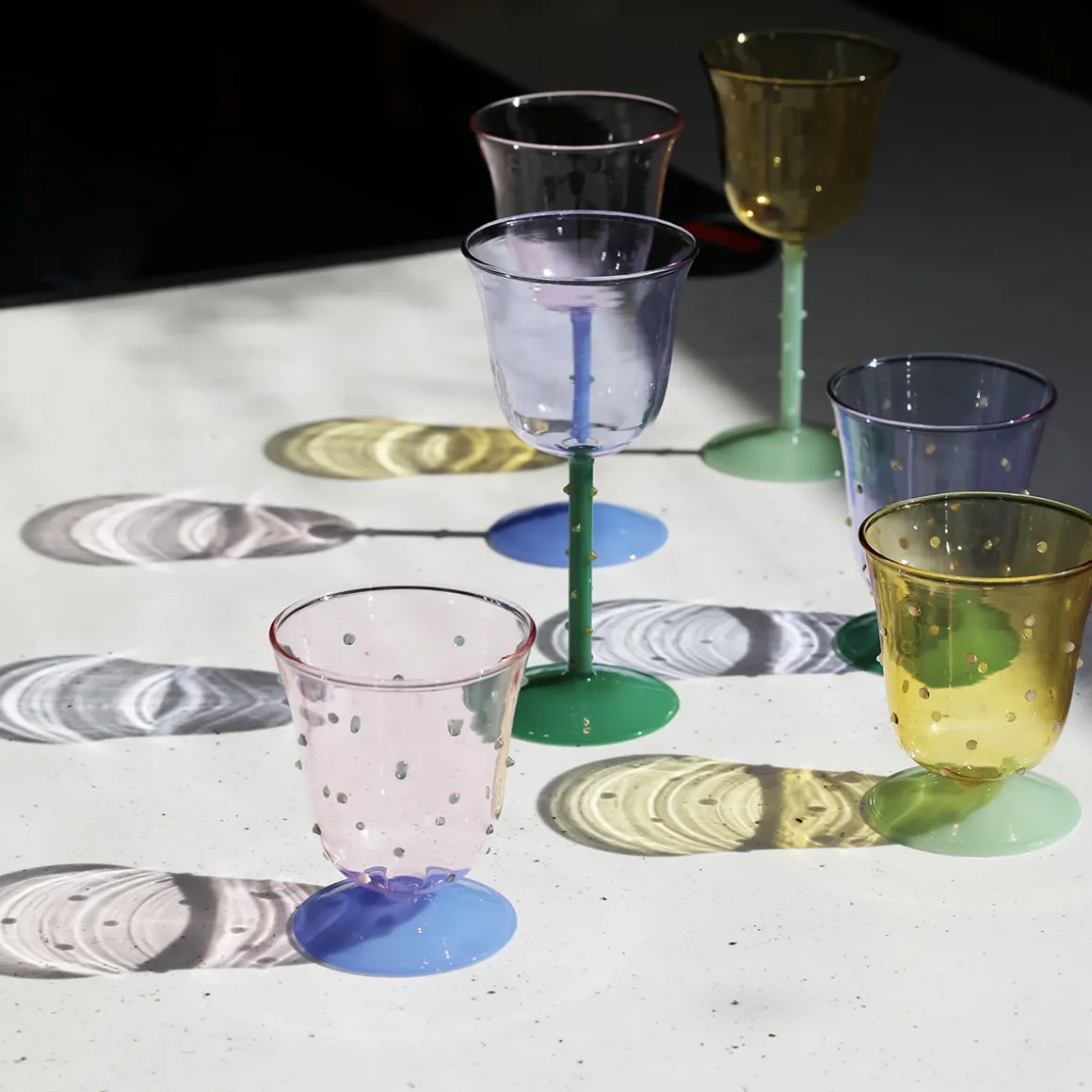 Ces verres à eau faits à la main s’inspirent des épines de rose, alliant élégance et beauté naturelle. Ce lot de verres à eau Dot s’harmonise parfaitement avec les verres à vin dot, apportant une touche raffinée à toute table.