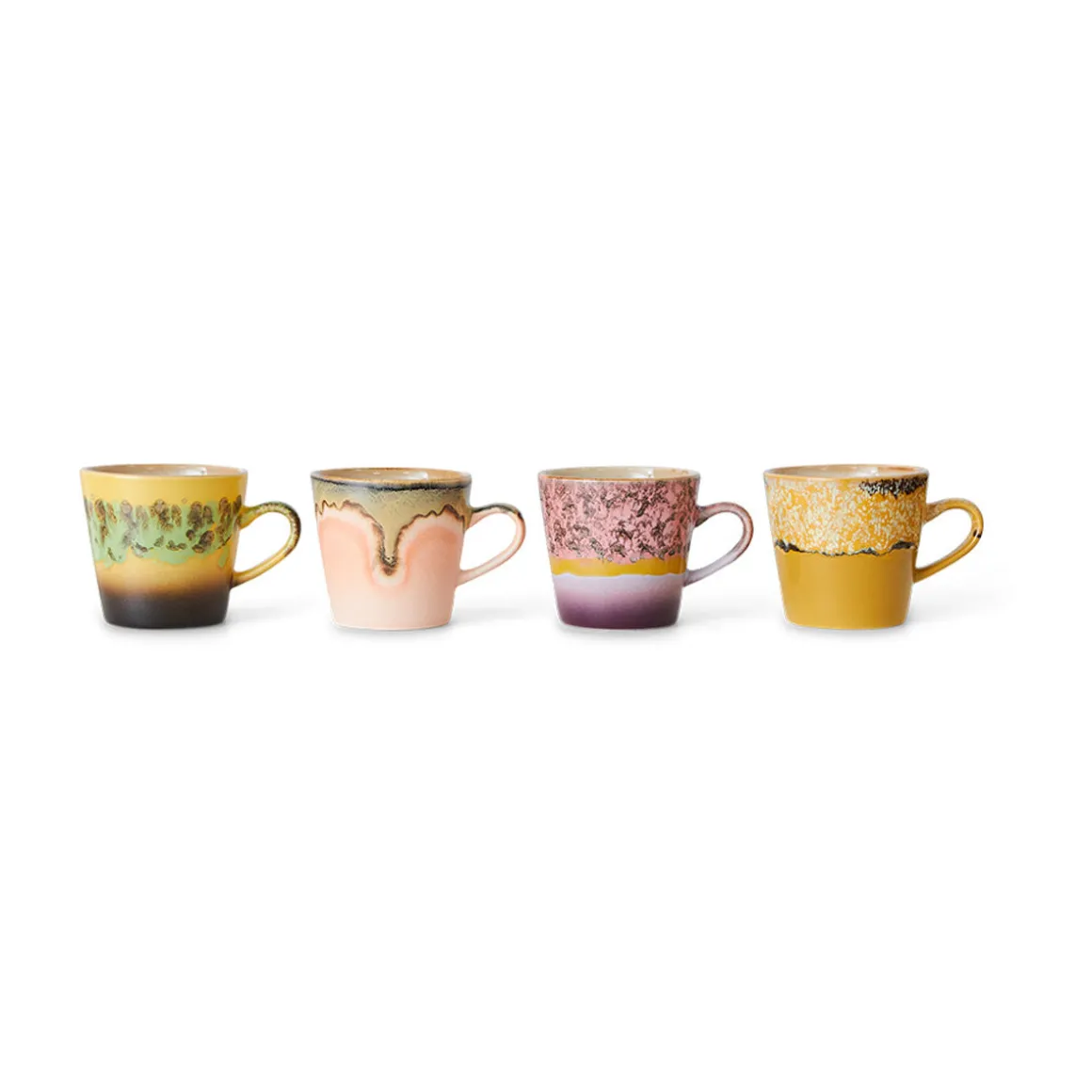Remontez le temps avec la collection de café en céramique des années 70 signé HK Living, un vibrant hommage à la culture du café. Ce Lot de 4 Tasses à Café Americans Radiant en Céramique 70’S est fabriqué avec un clin d’œil au passé, mais avec un savoir-faire moderne qui garantit la durabilité.