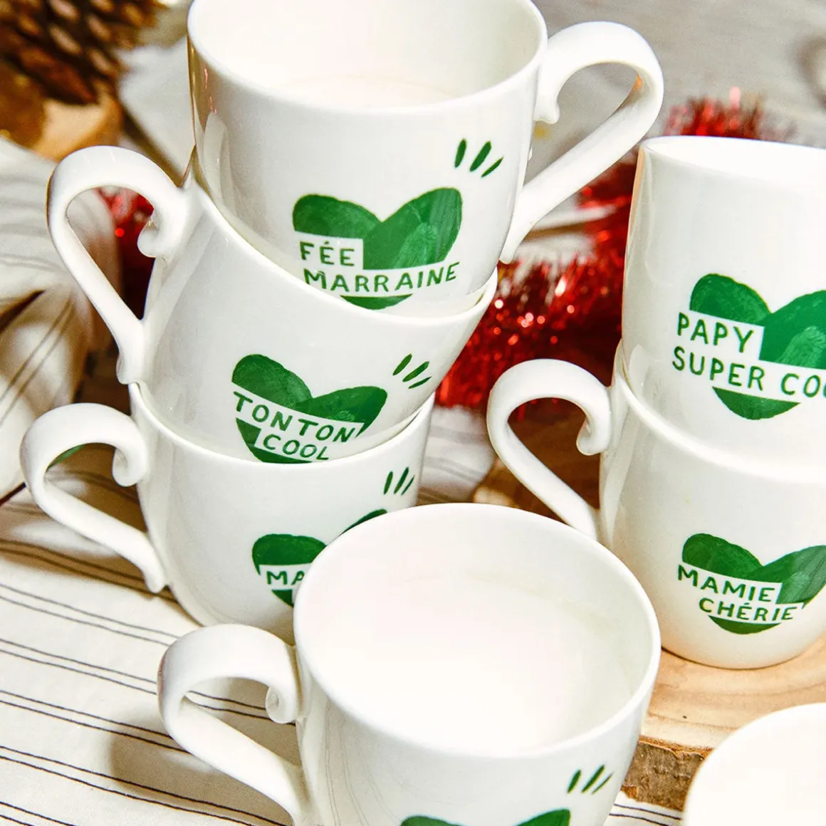 Offrez un moment de tendresse et de partage avec le Mug Cœur Papy Super Cool Vert Sapin. Que ce soit pour déguster votre boisson favorite en solo ou en compagnie de ceux que vous aimez, ce mug apportera une touche de chaleur et de convivialité à chaque instant.