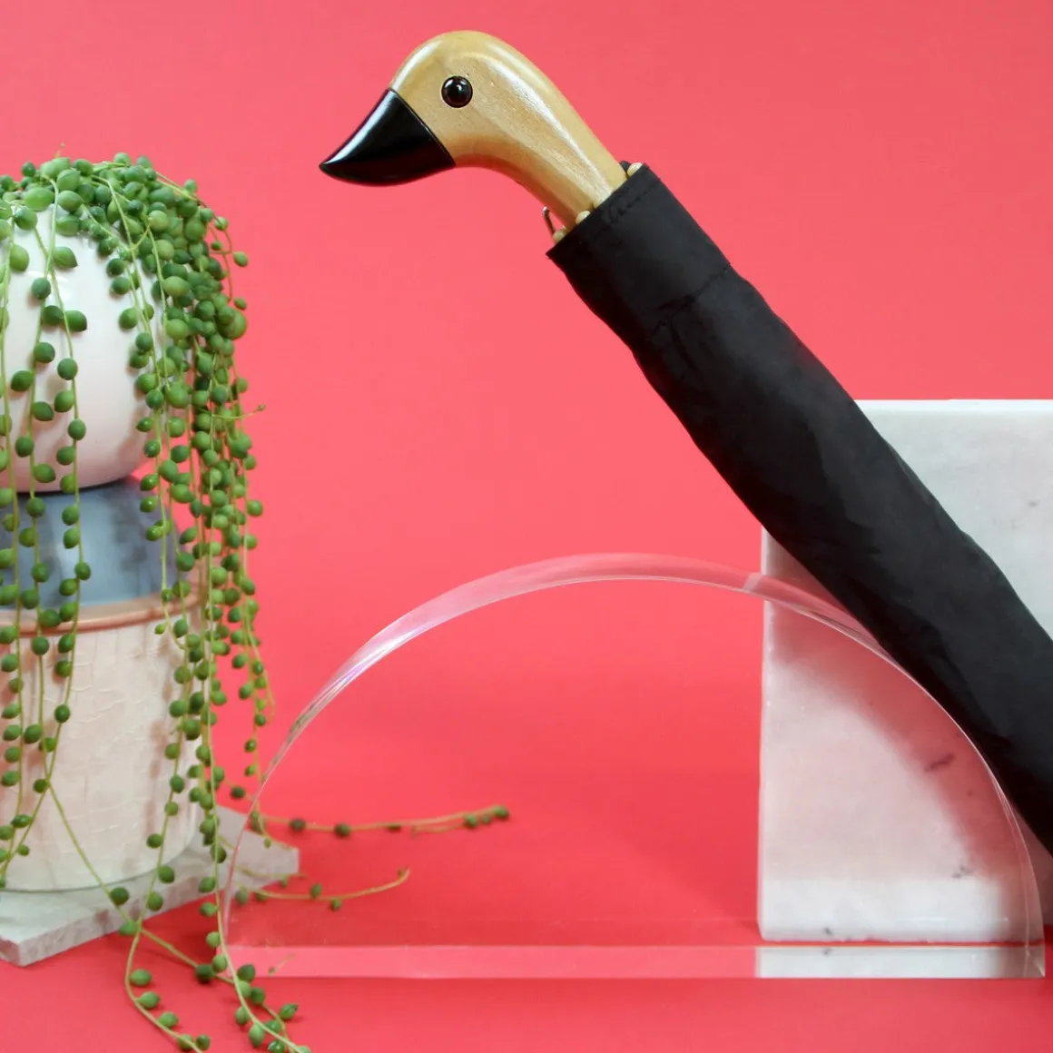 Original Duckhead apporte un twist au parapluie noir avec une petite tête de canard.