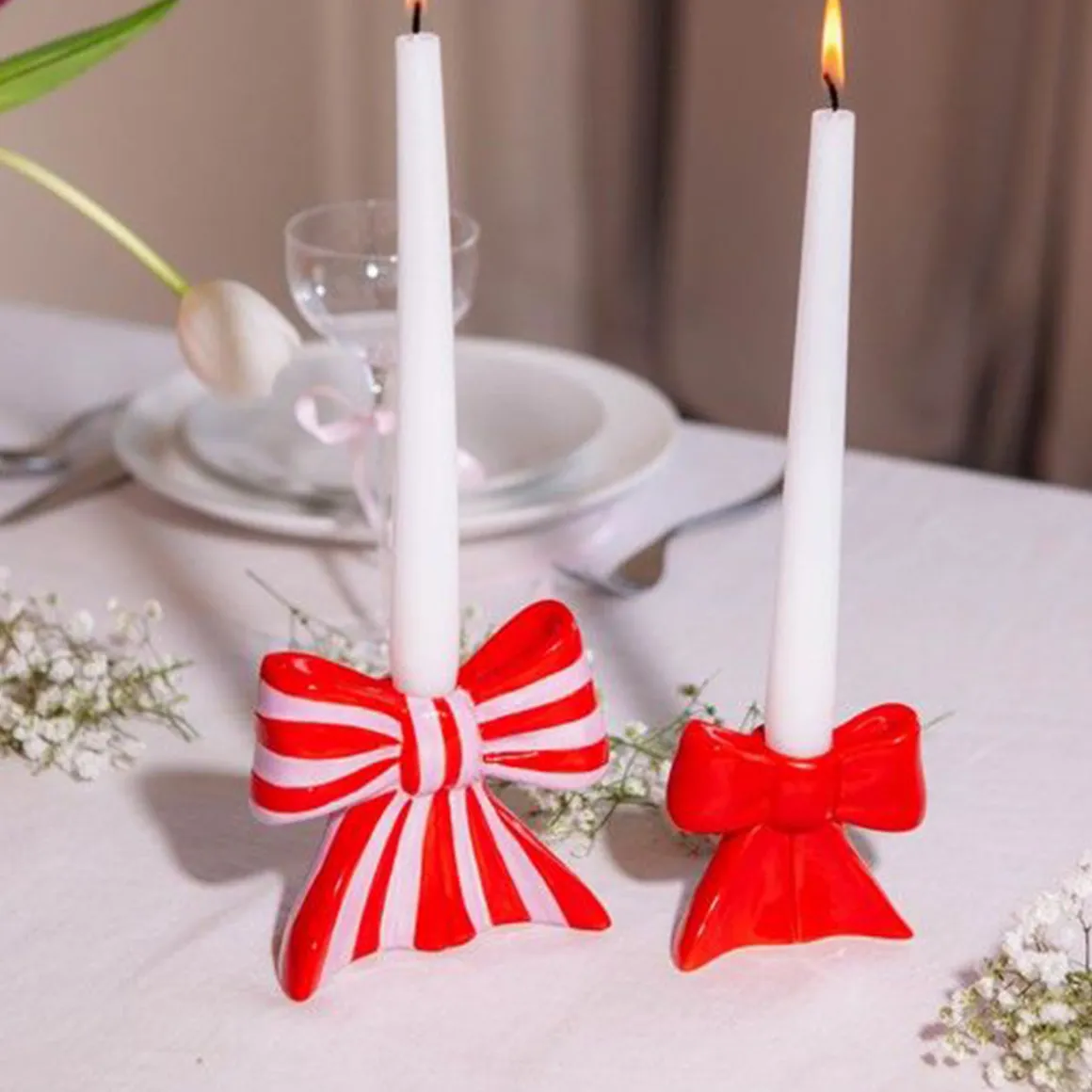 Ce petit bougeoir noeud rouge en céramique se distingue par son design raffiné en forme de nœud, capturant l’élégance gracieuse et l’esprit aérien du monde du ballet. Le nœud, symbole de délicatesse et de légèreté, évoque subtilement les rubans noués des chaussons de danse ou les accessoires sophistiqués des ballerines. Inspiré par l’esthétique éthérée du ballet, chaque courbe du bougeoir reflète un mouvement fluide, presque dansant, créant une atmosphère poétique et pleine de grâce.