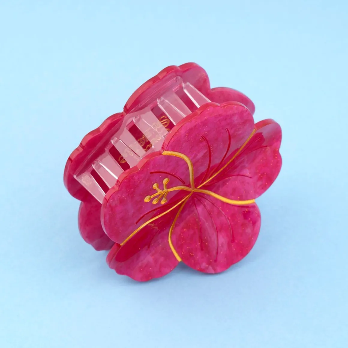 Ajoutez une ambiance estivale et ensoleillée à vos coiffures avec la Pince à Cheveux Hibiscus Rose Fushia à Paillettes ! Ce magnifique accessoire pour cheveux est orné d’une forme d’hibiscus rose pailleté, qui vous transportera instantanément vers les îles paradisiaques et les vacances en bord de mer.