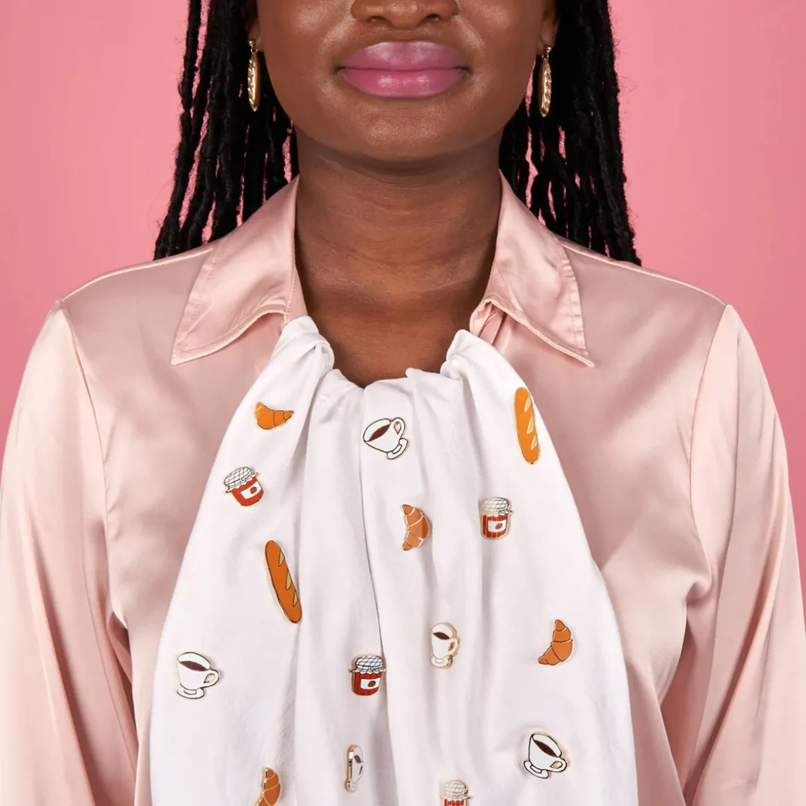 Idéal pour personnaliser vos vestes, robes, sacs ou même vos bretelles, il incarne l’accessoire parfait pour afficher fièrement votre amour pour les viennoiseries. Associez-le à sa copine, la tasse à café, pour former un duo aussi iconique que charmant !
