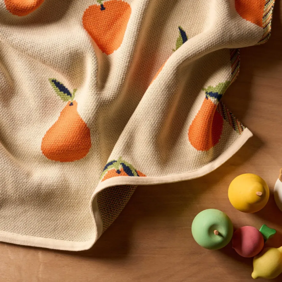 Fabriqué avec soin dans un atelier français, le Plaid Le Petit Verger, pour les enfants, met en valeur l’artisanat local et la qualité exceptionnelle de la maille Jacquard. Son motif unique, illustré à la main, associe des pommes, figues, poires et citrons à des couleurs vitaminées. Tricoté en coton fin, il est à la fois léger et enveloppant, parfait pour ajouter une touche chaleureuse à votre intérieur. Sur un canapé ou un lit, il invite à des instants de réconfort.