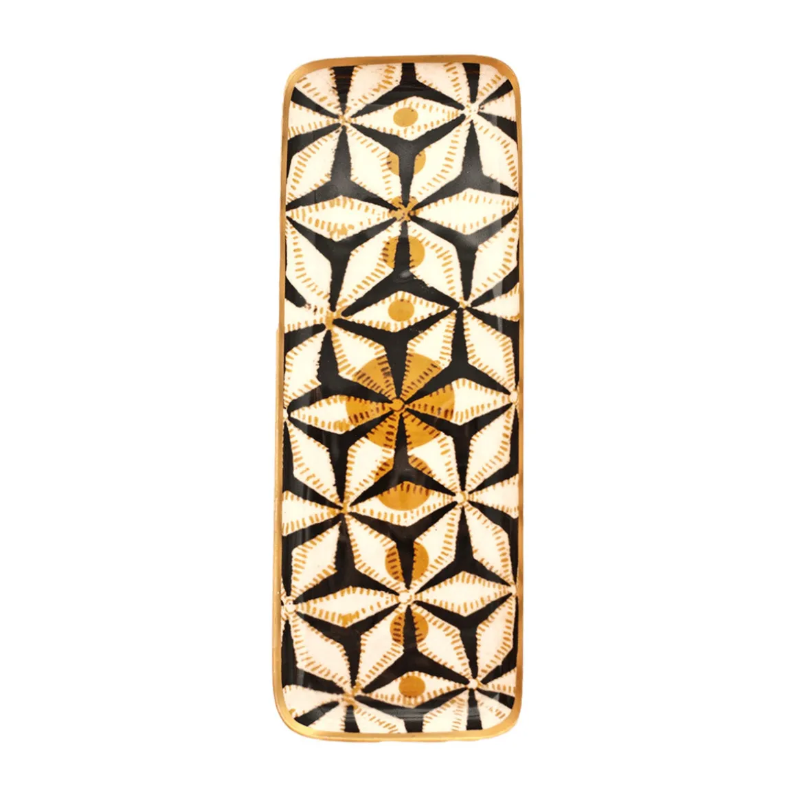 Plateau duo stars carbonne de Boncoeurs en aluminium émaillé et une bordure finition dorée à la main. Pour le service ou en déco, de jolis motifs inspirés des “block print” indiens se retrouvent partout dans la maison. Finesse dessins, sens du détail et élégance des lignes font de ces plateaux des pièces uniques ! De fabrication artisanale, les plateaux peuvent donc être sujets à de légères variations de formes et couleurs.