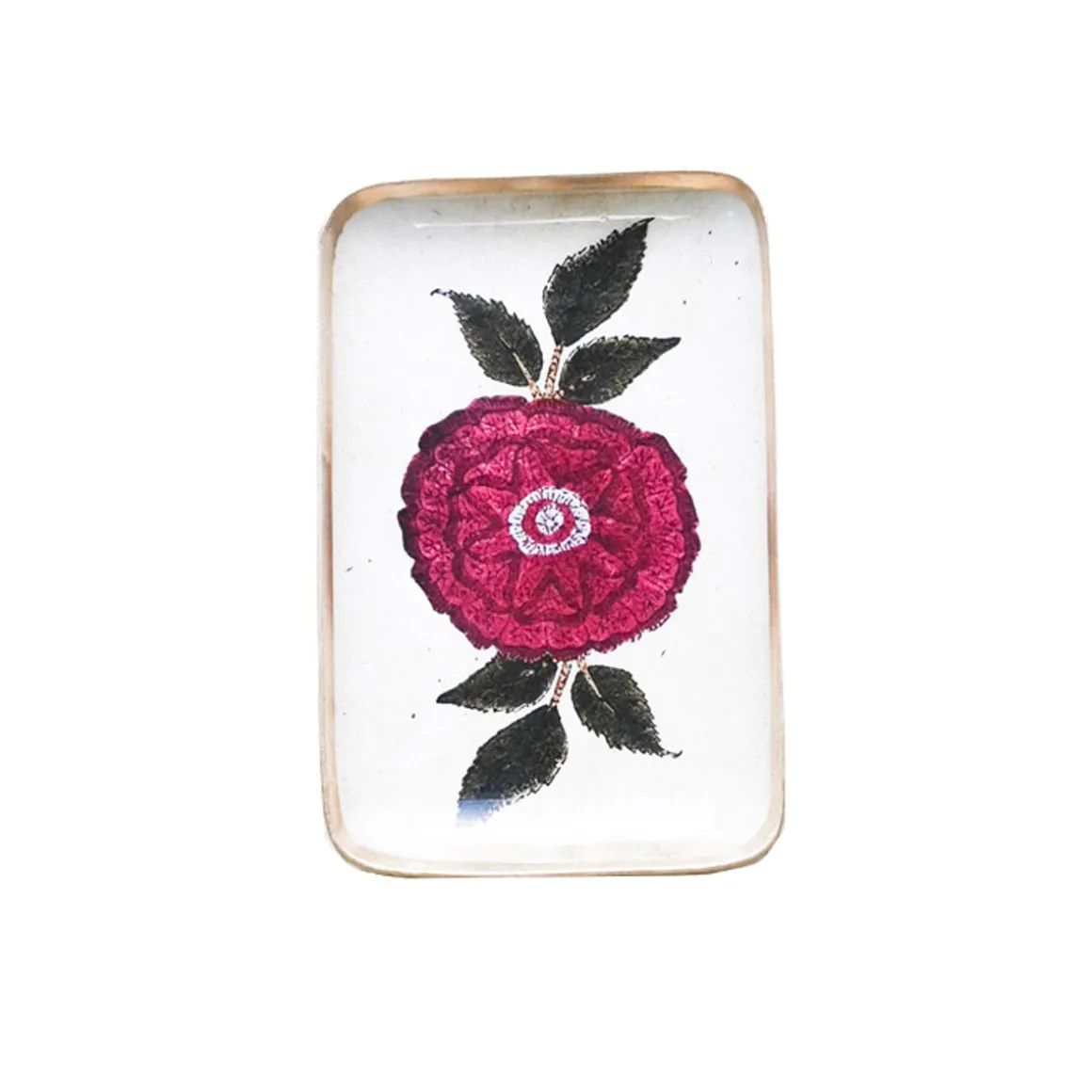 Servez en toute élégance avec le Plateau Solo Pivoine de chez Boncoeurs. Son joli imprimé pivoine et sa bordure à la finition dorée à la main ajoutent un aspect raffiné. C’est l’accessoire parfait pour mettre en valeur tout ce qui y est déposé. Cet objet est l’œuvre d’un artisan. La finition dorée à la main de la bordure rend chaque pièce unique grâce aux variations de formes et de coloris des patines qui peuvent apparaître.