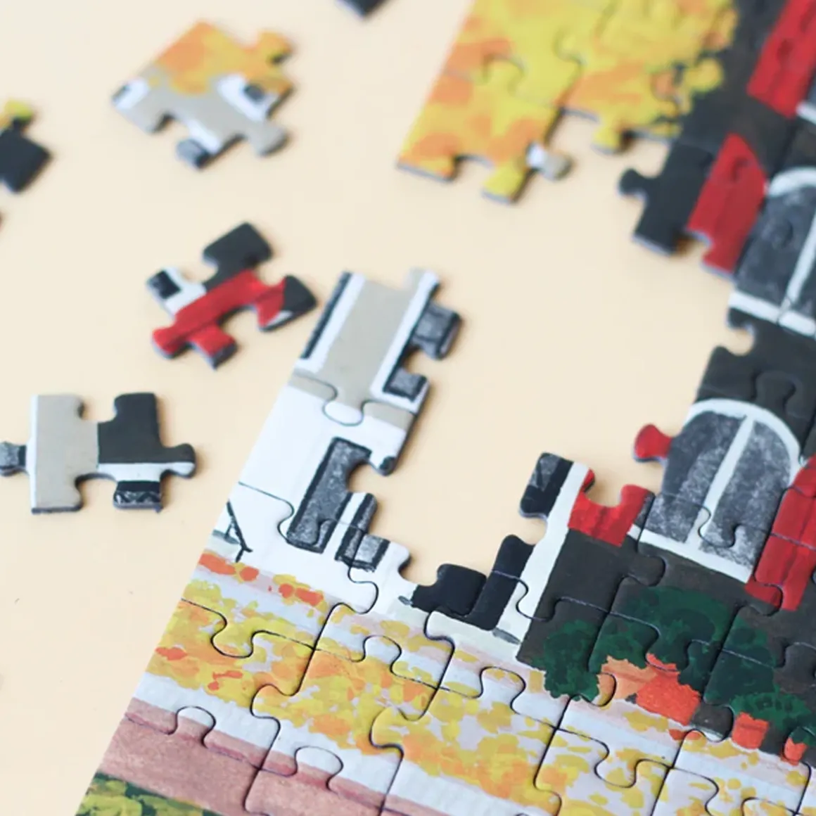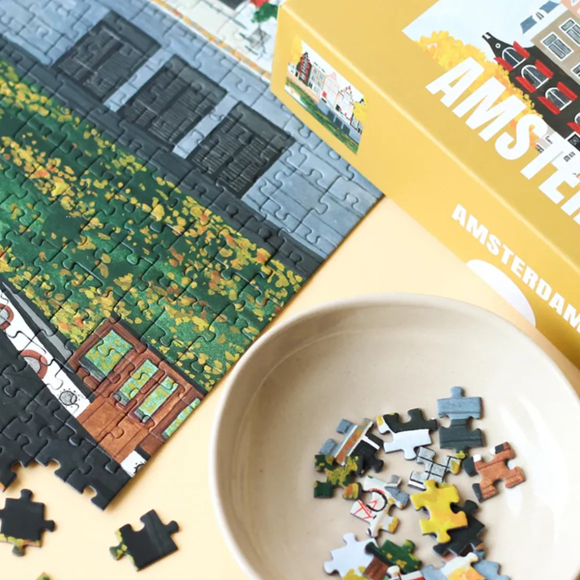 Découvrez le charme d’Amsterdam avec le puzzle de 500 pièces de Piecely illustré par Rachel Victoria Hillis, une illustratrice autiste originaire du Royaume-Uni, utilisant divers médiums tels que l’acrylique, la gouache, le dessin numérique, le collage, les crayons et les pastels..
