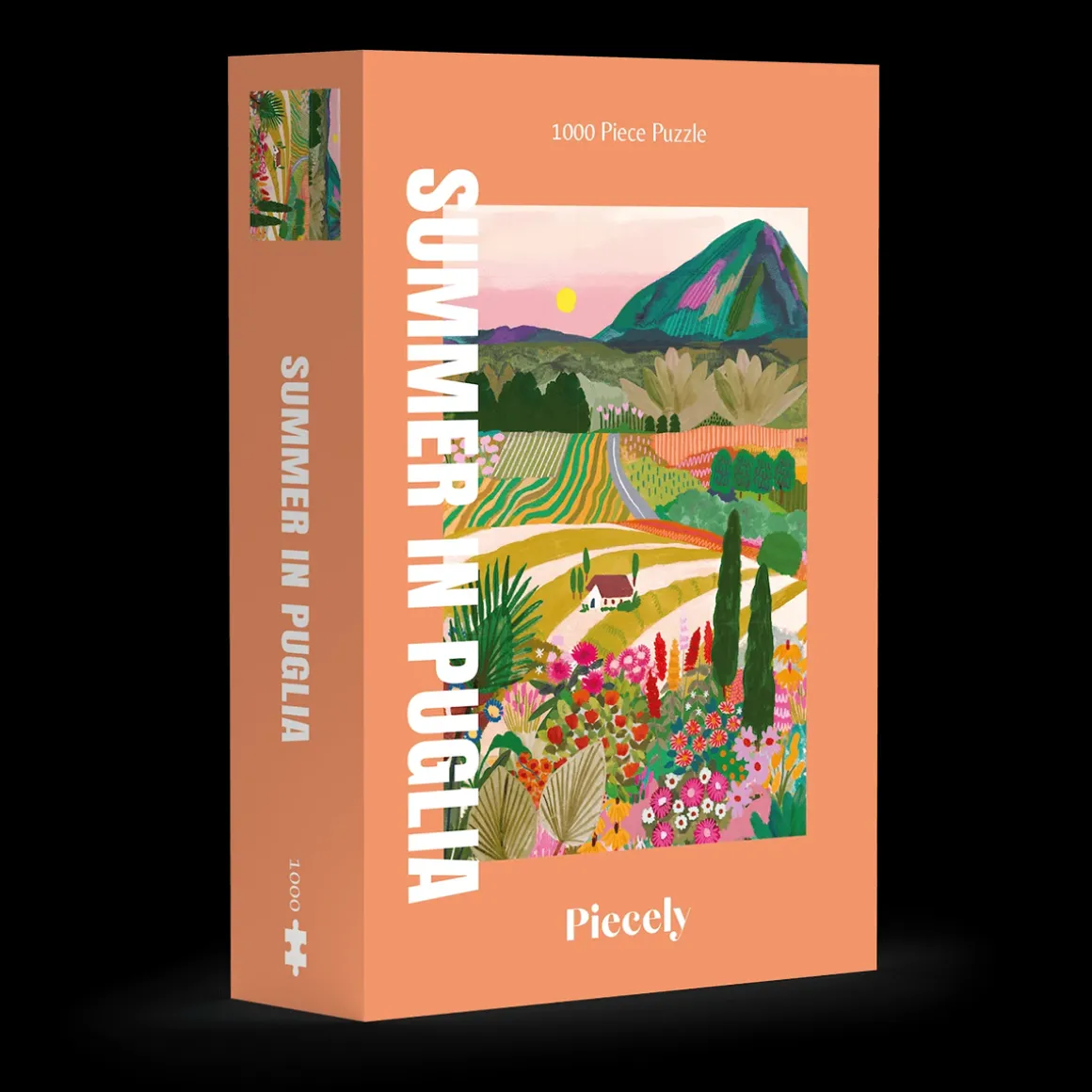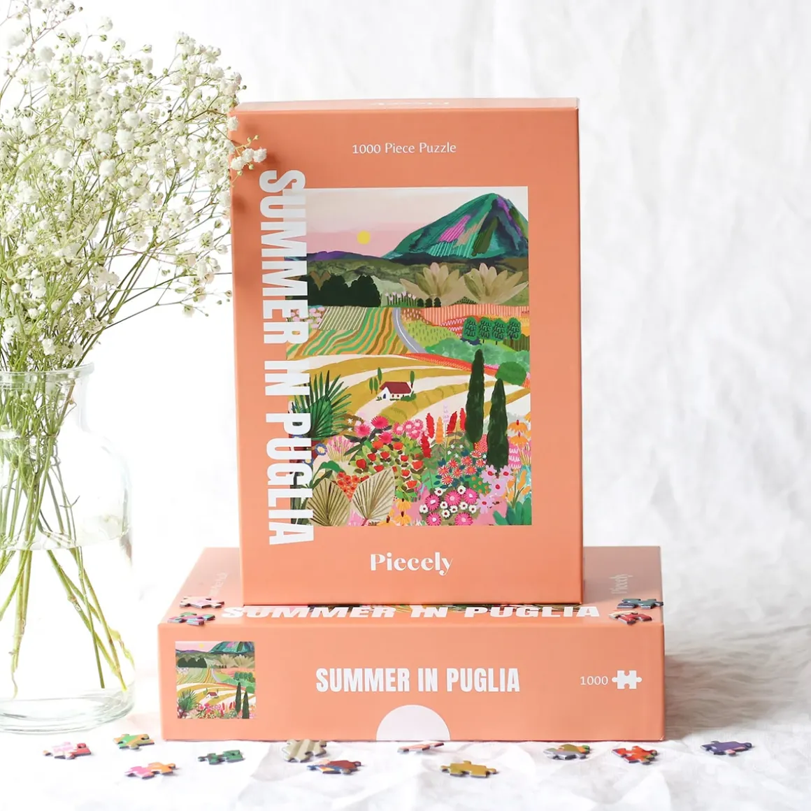 Un puzzle de 1000 pièces graphiques, design et ludique qui nous plonge au coeur des Pouilles, célèbre région qui incarne le talon de la botte italienne. Réalisée par Rhi James, cette illustration offre une palette de couleurs douce et réconfortante. Profitez d’une pause détente et laissez-vous envoûter par les Pouilles.