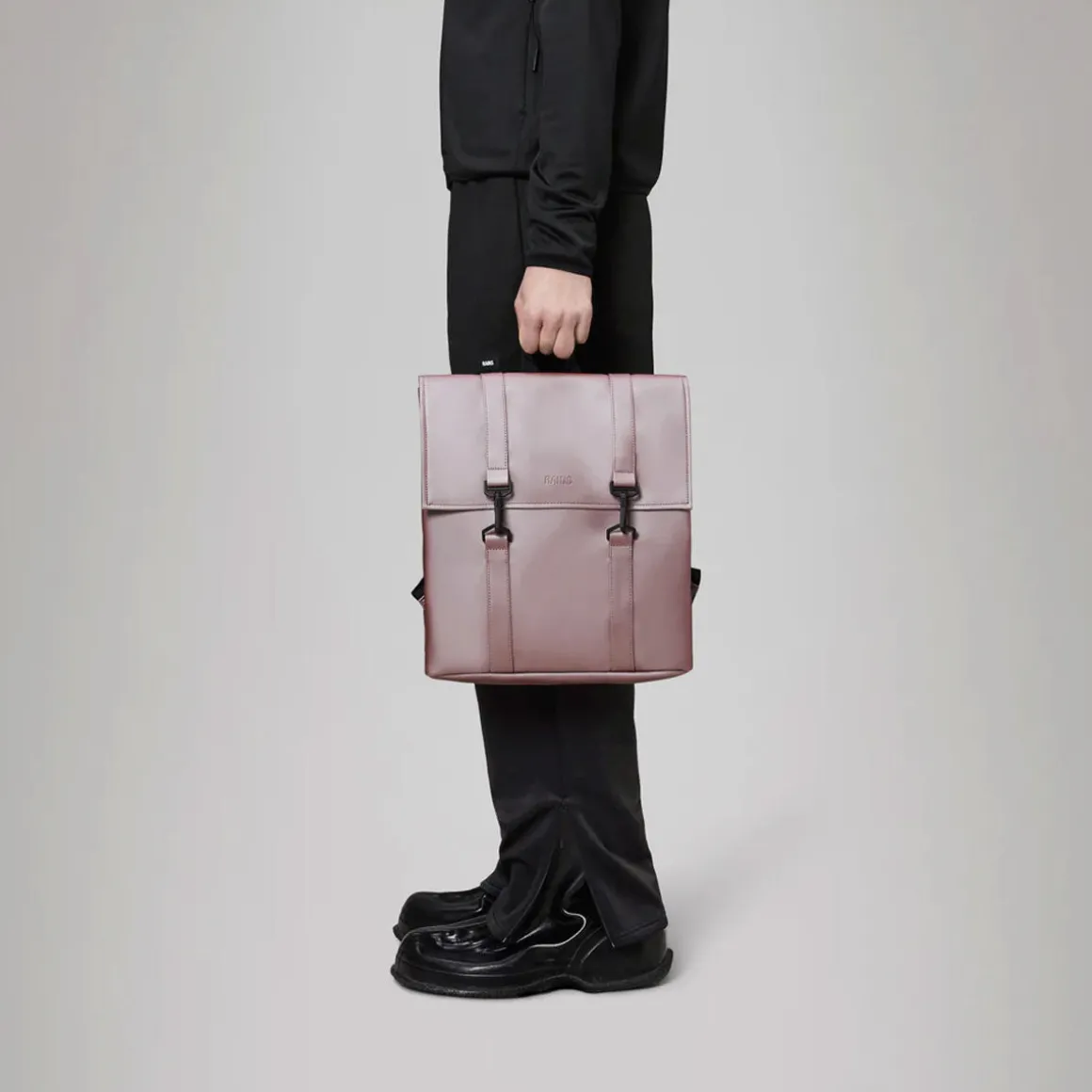 Le MSN Bag est confectionné en tissu PU emblématique et imperméable de Rains, offrant une résistance et une durabilité optimales pour un toucher ultra-doux.