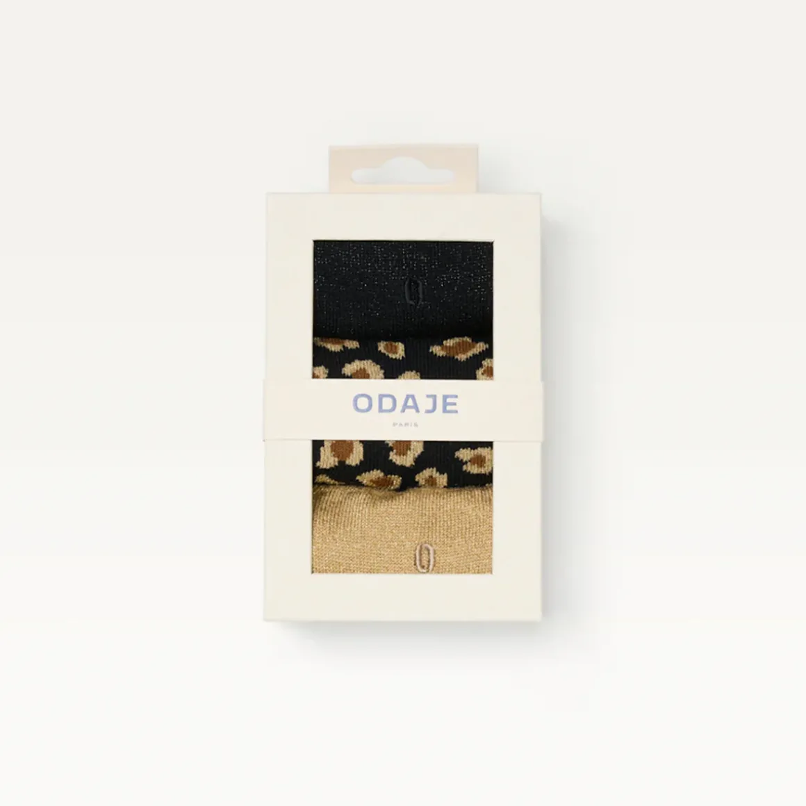 Le set de 3 Chaussettes Fantaisie Paillettes Léopard Noir Doré est parfait pour celles qui aiment allier confort et style étincelant !