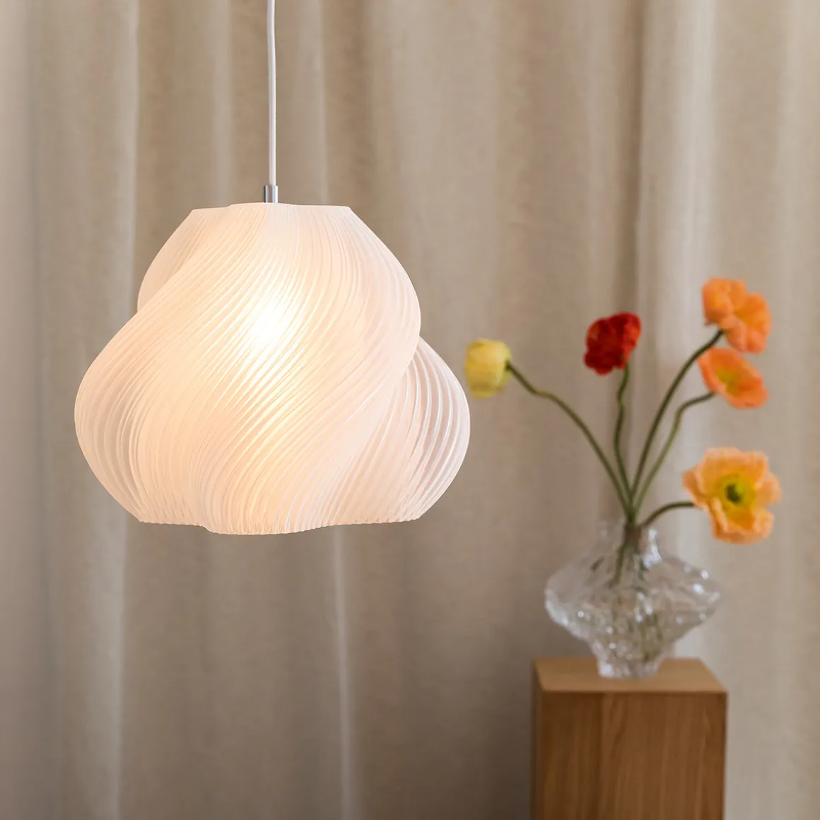 Fabriquée et emballée de manière durable à Stockholm, chaque lampe est exclusivement fabriquée à la demande grâce à une impression 3D garantissant une pièce unique.