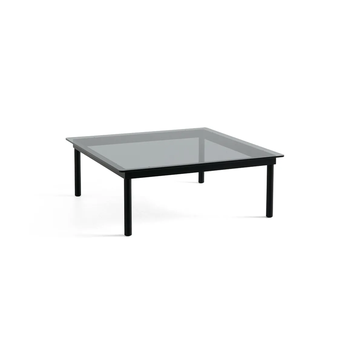 Une silhouette minimale pour cette table basse Kofi Chêne Massif Noir et Verre Teinté Gris de HAY… n