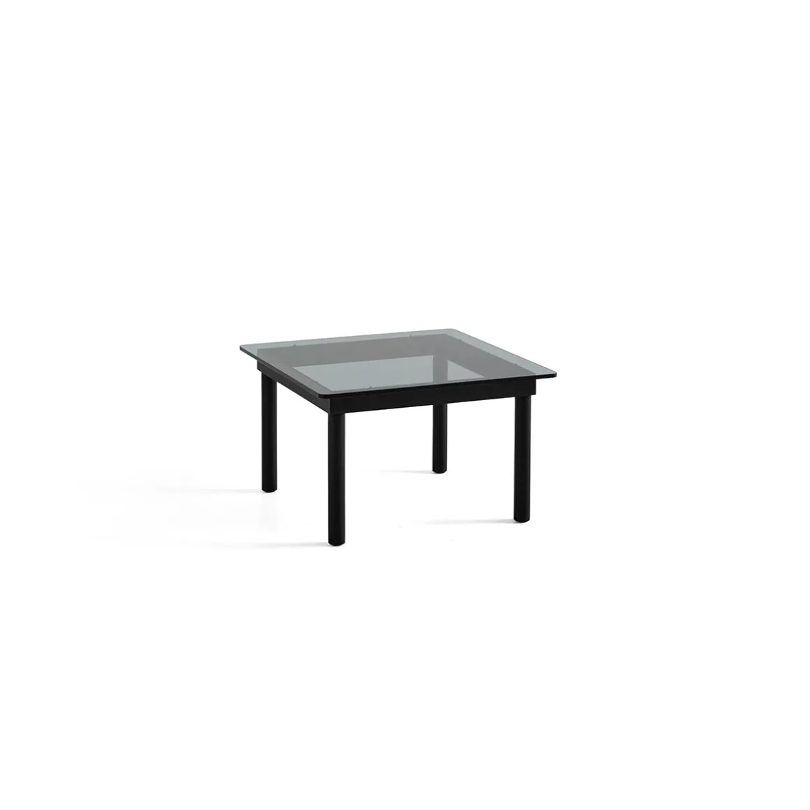 Une silhouette minimale pour cette table basse Kofi Chêne Massif Noir et Verre Teinté Gris de HAY… n