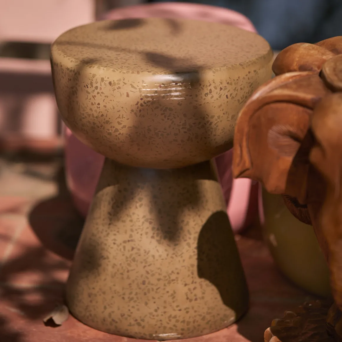Apportez un style artisanal et moderne à votre intérieur avec la table d’appoint Terrazzo Pebble. Sa base en béton robuste est parsemée de graviers sélectionnés avec soin, créant un motif terrazzo unique et captivant.
