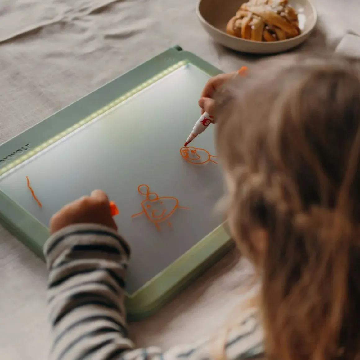 La Tablette Lumineuse Nomade Kidydraw-Pro est un outil créatif parfait pour stimuler l’imagination de votre enfant. Avec sa fonction lumineuse, il peut reproduire des lettres, des chiffres ou des dessins existants avec une grande précision. Biface, la partie arrière offre un tableau noir unique qui met en valeur les couleurs de chaque création dans l’obscurité grâce à un effet néon. Idéale pour des moments de dessin aussi éducatifs qu’amusants, cette tablette nomade permet à votre enfant de s’exprimer partout et à tout moment.