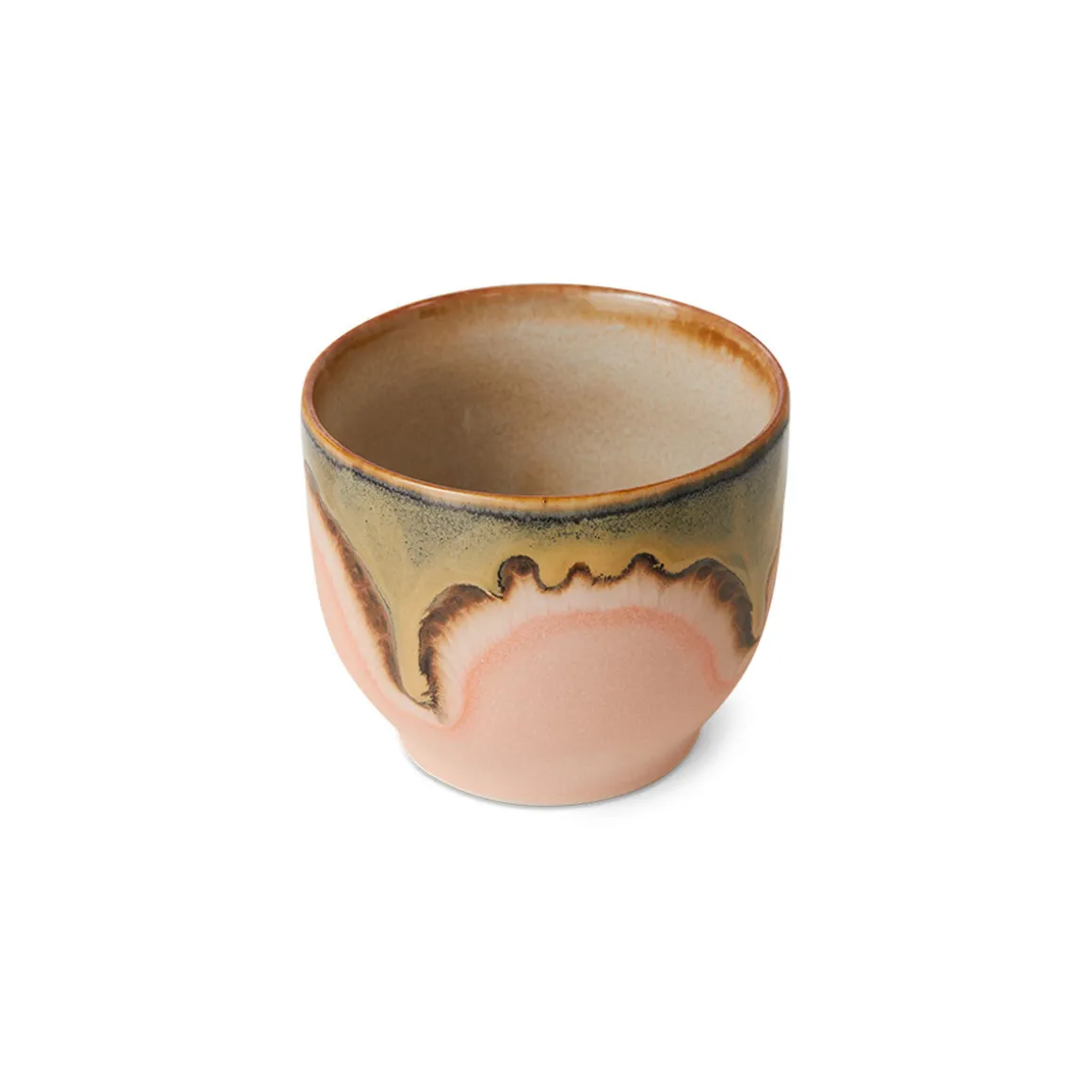 Ces tasses en céramique au style des années 70 sont polyvalentes, élégantes et passent au lave-vaisselle, alliant praticité et charme d’antan.