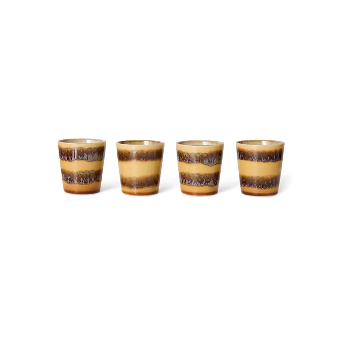 Ces tasses en céramique au style des années 70 sont polyvalentes, élégantes et passent au lave-vaisselle, alliant praticité et charme d’antan.