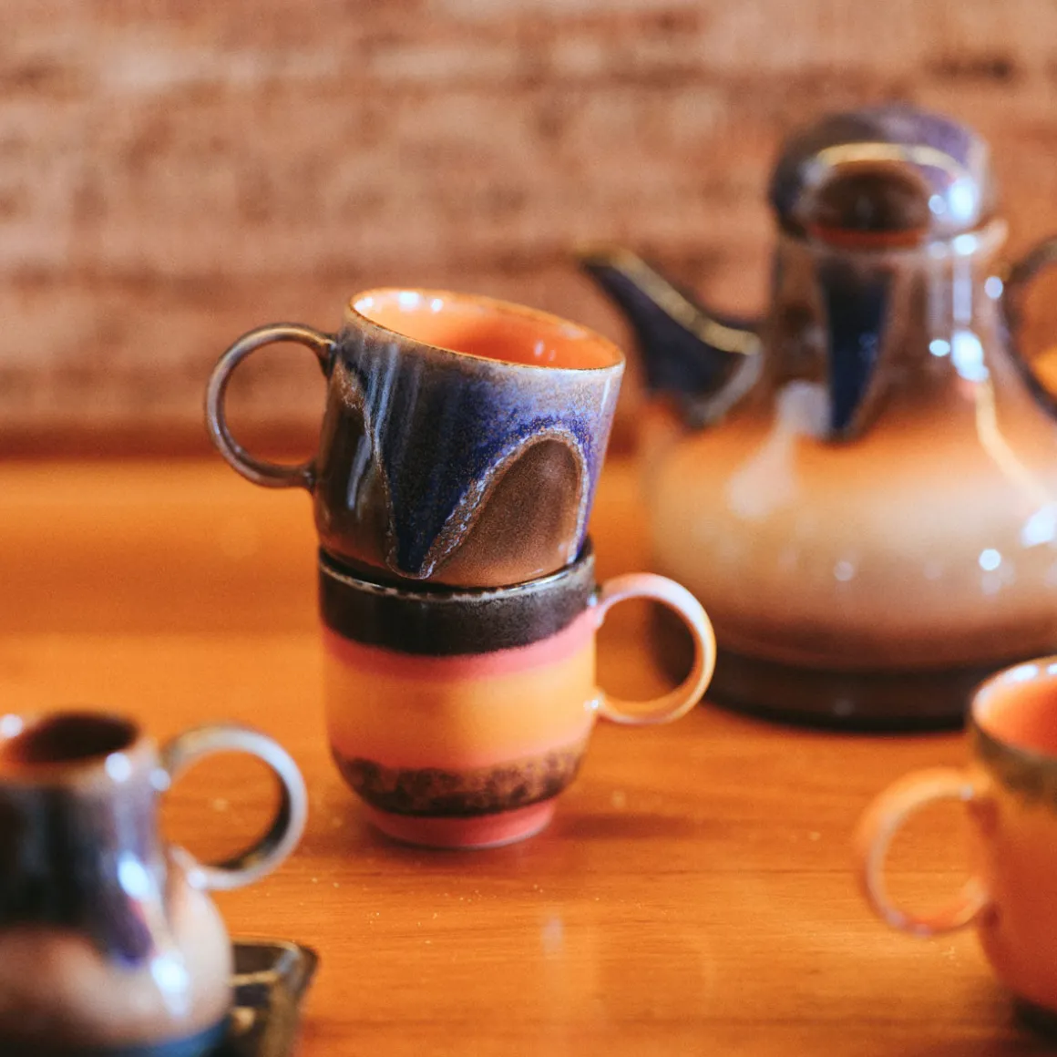 Ces tasses en céramique au style des années 70 sont polyvalentes, élégantes et passent au lave-vaisselle, alliant praticité et charme d’antan.